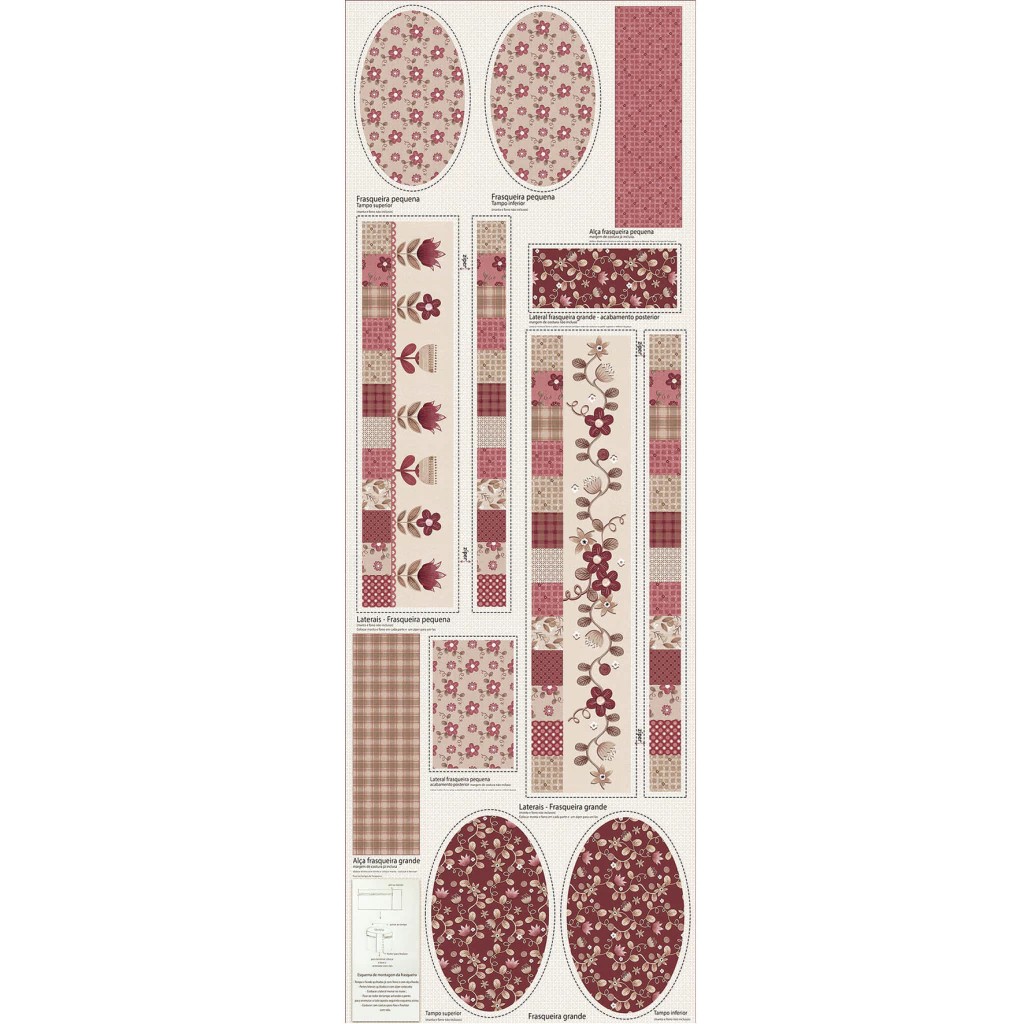 • O tecido já vem com o molde impresso no próprio painel, com marcações para corte e montagem facilitadas. Basta recortar nas linhas tracejadas, costurar, colocar um estruturador (manta ou nylon acoplado), um forro, zíper, etc (não inclusos) e pronto!