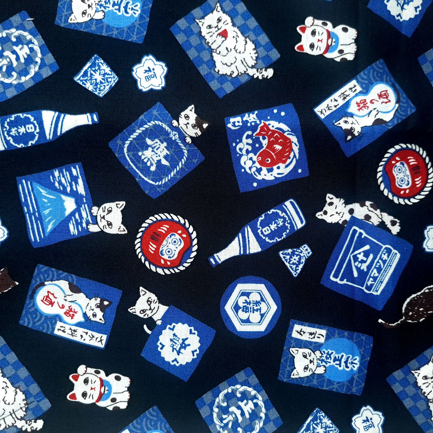 Tecido em Algodão Colorido com as estampas típicas da tradição japonesa