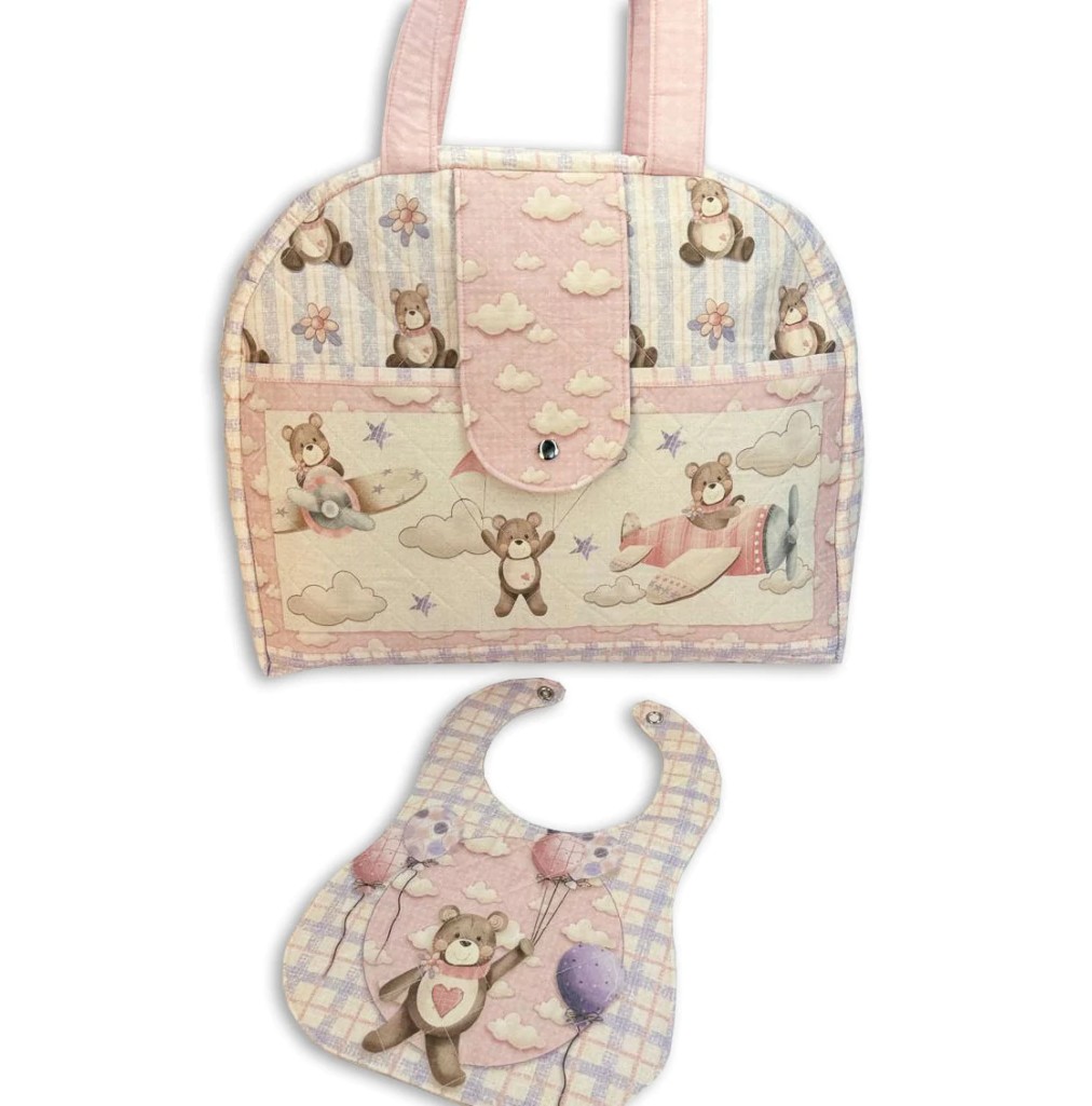 • Com este encantador painel, desenvolvido especialmente para projetos do tipo "Faça Você Mesmo" (DIY) você pode montar 1 linda Bolsa e 1 lindo Babador, ideal para presentear ou vender.